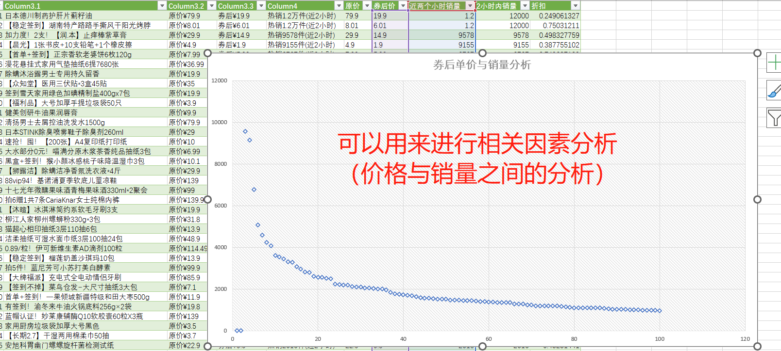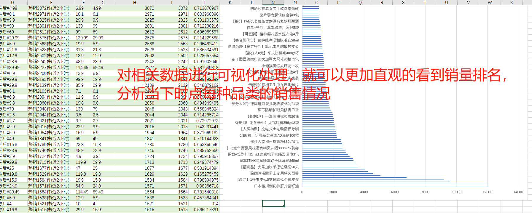 2、可以看到在近两个小时销售量中,排名前几位的仅仅剩下1这样的数字(万已经被替换完毕),后面的数字可以正常显示。