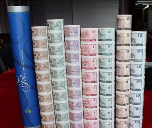 第四套人民币整版钞俗称人民币大炮筒,发行于2001年,被尊称为最具投资潜力的“钞王之一”。该套钞由第四套人民币1角、2角、5角、1元、2元、5元和10元七种卷别的整版纸币构成,面值总计722.5元,其中,1元、2元、5元三种券别均是由竖8横5计40枚的连体纸币构成;5角券别是由竖9横7计63枚连体纸币构成;1角与2角两种券别均是由竖7横10计70枚的连体纸币构成;而10元连体钞的规格尺寸最大,它是由竖7横5计35枚连体纸币构成。所有这些连体纸币均卷装在一个相对应的精致园筒内,既能够起到防尘、防蛀、防潮、防霉之“四防”作用,又能够很好地起到防卷曲折损等保护作用。