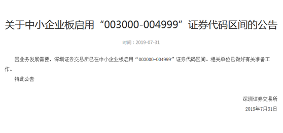 此前深交所公布因业务发展需要,已在中小企业板启用"00