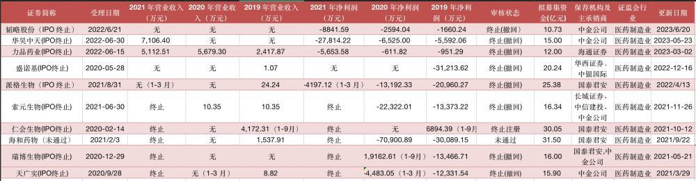 今年 3 月8日,报告期内无收入的轩竹生物上会被“暂缓审议”,随后公司在2023 年6 月 30 日,以“更新财报数据”为由申请“中止审核”,至今尚未恢复;6 月 20 日,韬略生物也主动撤回了 IPO 材料。