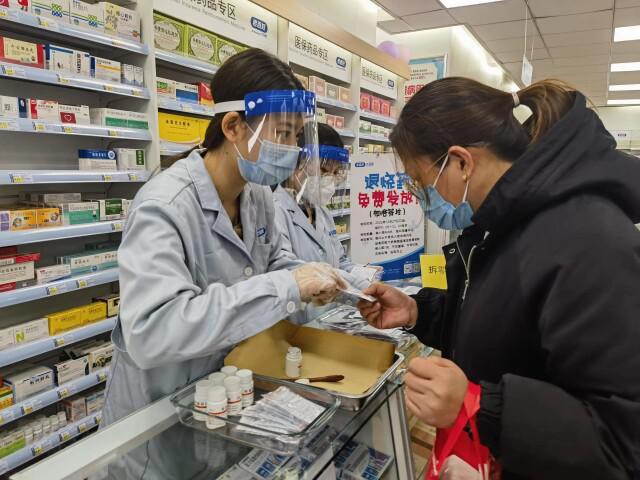 (老百姓大药房门店工作人员在为顾客讲解用药注意事项。通讯员 摄)