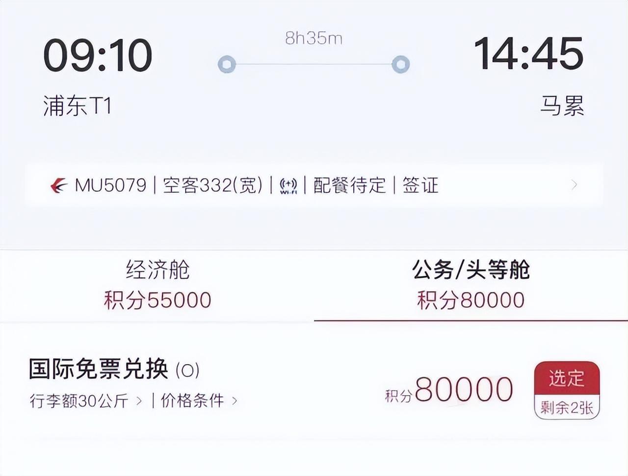 50万积分究竟能换什么呢?兑换机票的话,12000万积分可以兑换经济舱,21000万积分可以兑换公务或头等舱。例如飞马尔代夫,8个多小时宽体机躺飞,只需80000分往返再加不到3000的税费,往返不到7000元。
