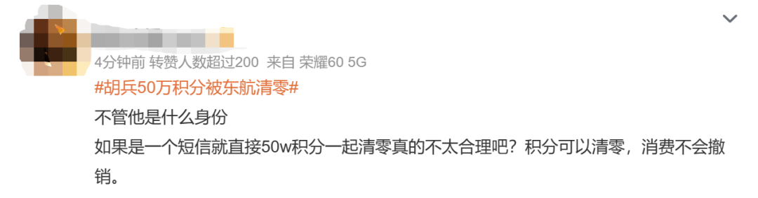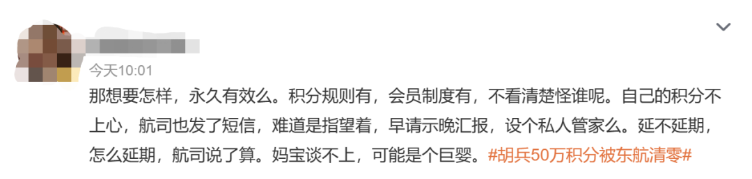 关于胡兵50万积分被东航清零这件事,你怎么看?