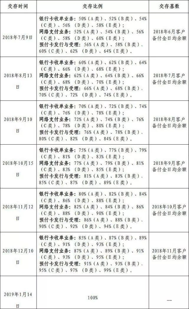 2018年6月29日,央行发布《关于支付机构客户备付金全部集中交存有关事宜的通知》(即“114号文”),自2018年7月9日起,按月逐步提高支付机构客户备付金集中交存比例,到2019年1月14日实现100%集中交存央行。这是央行第一次对备付金交存提出具体时间。