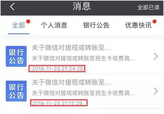 此前,微信支付发布了一则提高民生银行卡支付手续费的公告,公告内容显示,自2018年12月18日起,向民生银行卡提现或转账,在原0.1%服务费基础上,再加收0.05%的附加费用共收取0.15%服务费,单笔最低0.15元。