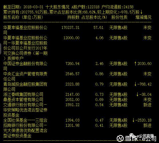 华夏幸福2018年1季度“十大股东情况表”显示,