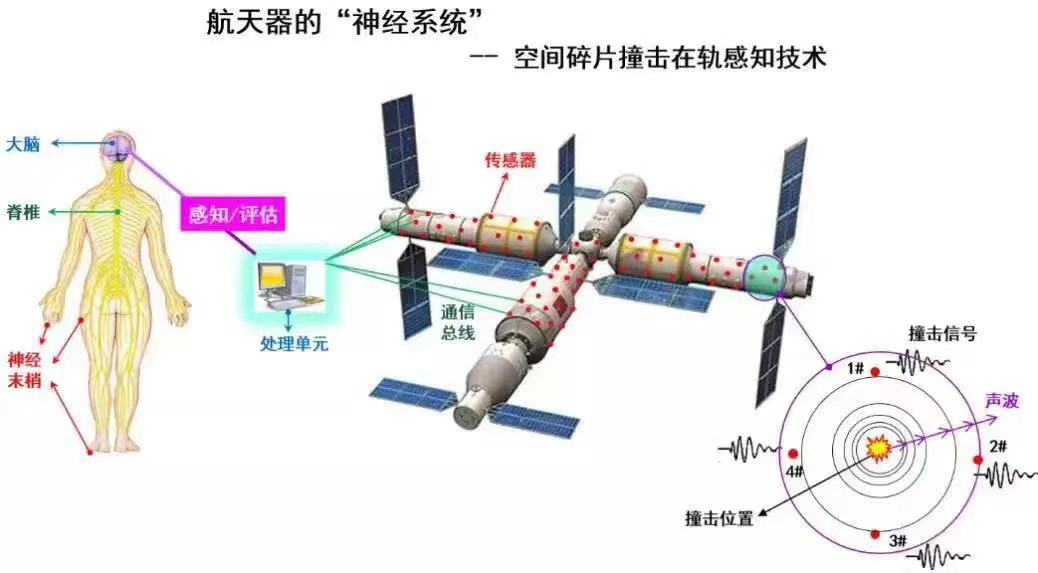 为应对空间碎片威胁,航天学院庞宝君教授团队与北京空间飞行器总体设计部,联合开发了专门针对梦天实验舱结构特点的空间碎片撞击感知技术,并将其应用于梦天实验舱结构健康监测子系统的空间碎片撞击监测模块。该技术能够对空间碎片撞击事件进行实时感知、判别并定位,为航天员和地面控制人员及时采取应对措施提供依据,保护空间站和航天员安全。