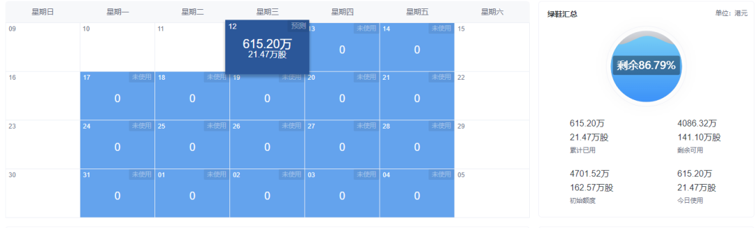 LiveReport大数据,KEEP本次绿鞋总额约为4701.52万港元。截止收盘,全日使用绿鞋金额约615.20港元。未使用金额约4086.32港元(约141.10股),剩约86.79%。