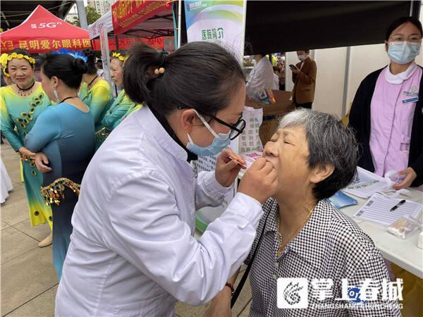 一大早,太和街道雷锋广场人头攒动,昆明爱尔眼科医院、昆明市口腔医院、云南协美医院等6家辖区内专科医院现场为居民提供口腔检查、测量血压、视力检查等医疗服务,让居民了解辖区内的医疗资源,帮助居民解决看病难的问题。各医院代表纷纷表示:“义诊活动将持续开展,将用自己的爱心、耐心、细心和责任心来诠释‘良苦用心’和‘医者仁心’”。现场,辖区艺术团带来了精彩的舞蹈表演,并设有现场抽奖环节,获奖居民分别获得健康体检、免费洁牙等奖品。