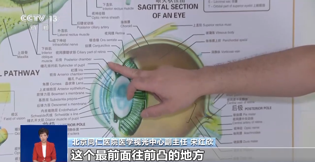 我们眼睛要看物体、看人的时候,光线通过我们前边这一组光学系统,应该清晰地落在我们的视网膜,或者更准确说落在黄斑这个位置上,才能够清晰成像,才算我们人眼看到清晰的物体或者清晰的一个景象。青少年更多是调节性近视,就是光线通过我们的角膜和晶状体之后,再加上我们睫状肌过度调节以后,成像在我们视网膜前,图像无法准确聚焦在我们的视网膜和黄斑上,造成我们看到的影像模糊不清。另外还有一种情况是由于某些病理性因素,孩子先天基因的异常,或者是爸爸妈妈就是高度近视,这种遗传的因素造成眼轴变得比正常孩子眼轴更长,这时候也会造成我们看到图像落在视网膜之前。