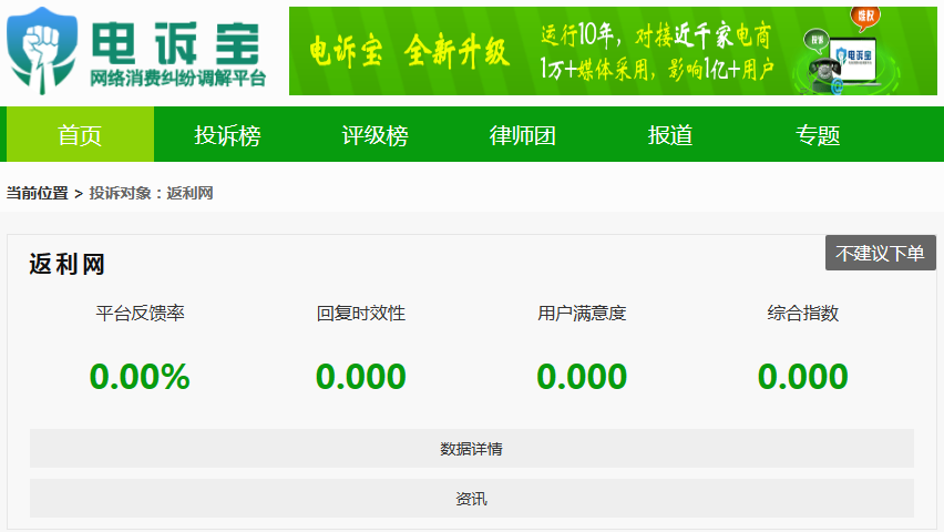 根据“电诉宝”2022年受理的数字零售的导购电商领域用户有效投诉显示(依据投诉量排行),返利网最新评级为“