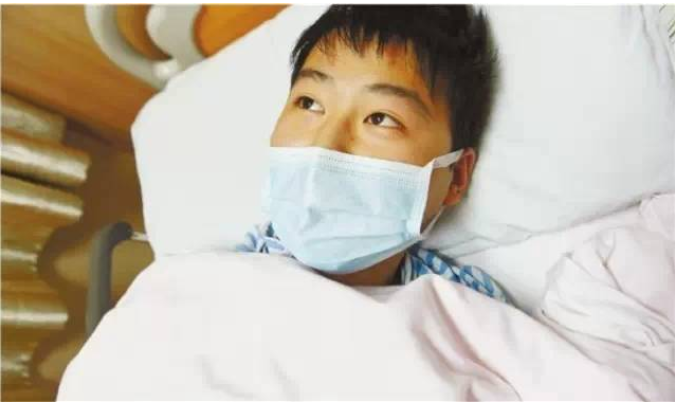 2015年1月,方博做了第三次化疗,1米78的他,被厚重的被子裹住,显得格外瘦小。他安慰妈妈:“没事的。我还好。”