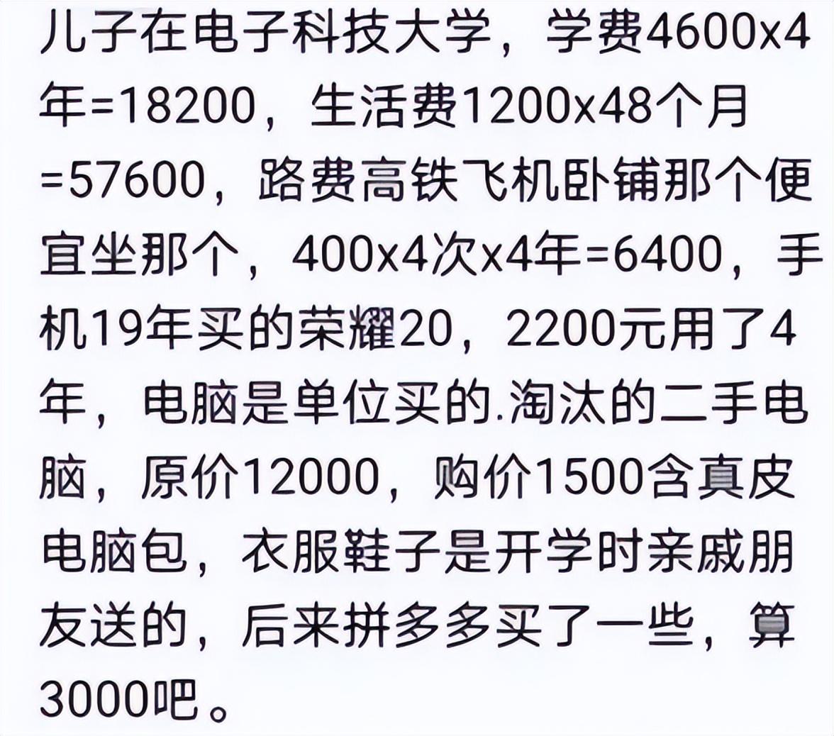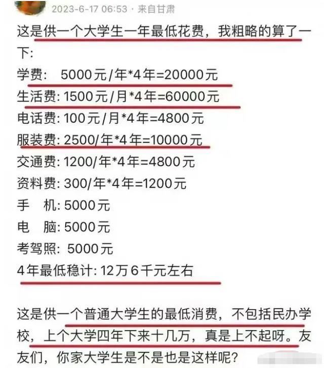 “这真供不起!”甘肃妈妈晒孩子大学4年花销,引底层人民热议