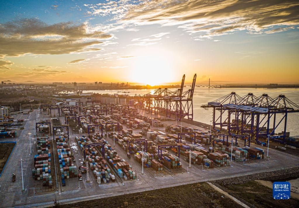 这是2021年5月26日在海南洋浦经济开发区拍摄的洋浦国际集装箱码头(无人机照片)。新华社记者 蒲晓旭 摄
