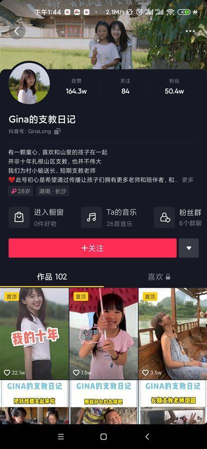 极目新闻记者查询获悉,龙晶睛视频账号名为“Gina的支教日记”。视频里,龙晶睛大多穿着黑白T恤,配上标准的八颗牙微笑。在山间小径中,她带着孩子们翩翩起舞。
