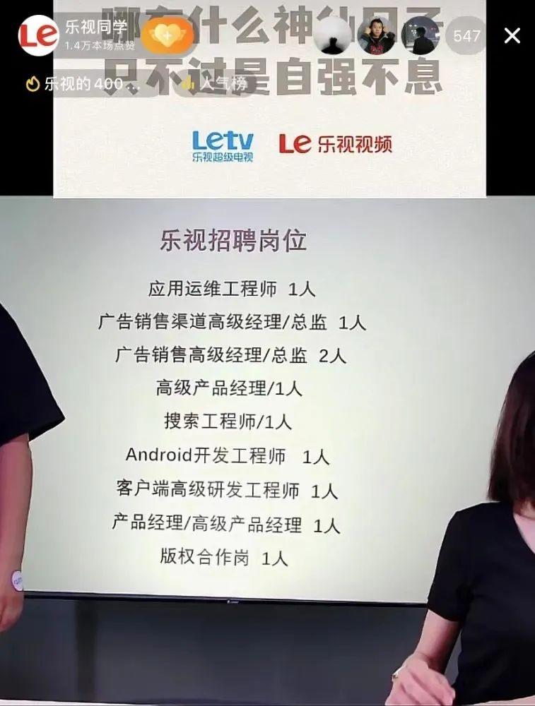 前不久,在“乐视同学”官方抖音直播间,HR还现场搞起了招聘介绍会。HR直言不讳地介绍了乐视的员工福利,虽然她曾多次强调“这不能称之为福利只能叫基本保障”,但也足以吸引人们的眼球。