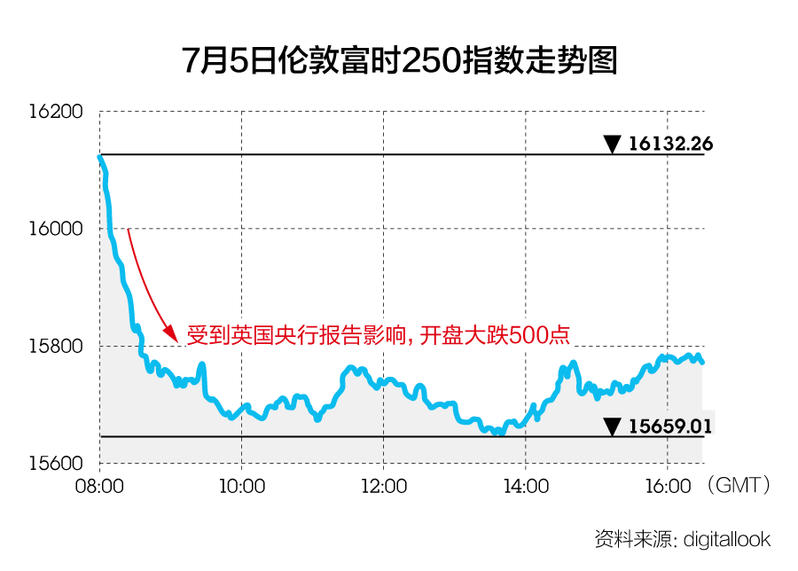 伦敦富时250指数为例,英国央行的报告发布后,当天这一指数的跌幅达到了2.37%,刚开盘时更是一路狂跌近500点。