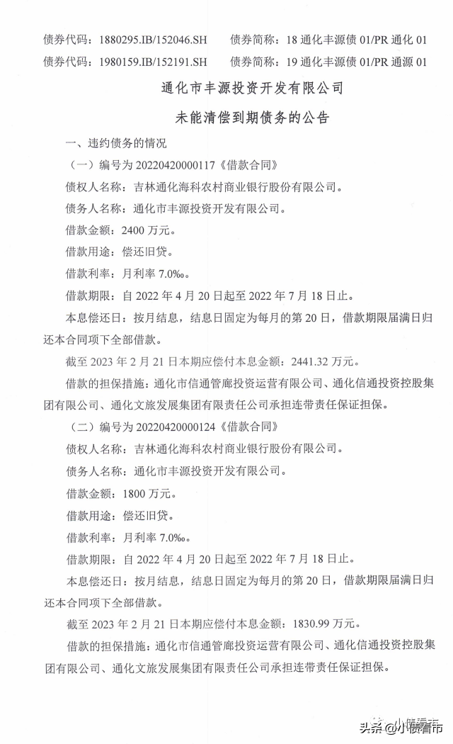 2月21日,通化市丰源投资开发有限公司(以下简称“丰源投资”)公告称,截至2023年2月21日,公司未偿还逾期债务的累计总额为5594.7万元。