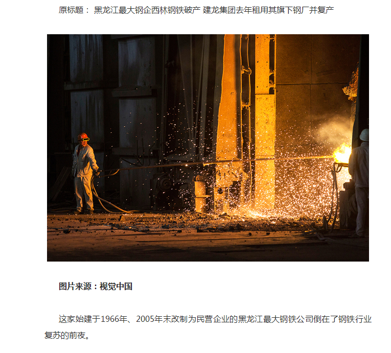 2014年,西林钢铁曾被曝出拖欠员工数月工资,随后又被指负债上百亿、资不抵债。2018年10月,这家黑龙江曾经的最大钢企终于支撑不住,宣布破产重整。