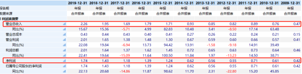 据wind数据显示,2016-2019年,该公司的营收分别为1.8亿、1.7亿、1.9亿、2.26亿,净利润分别为1.4亿、1.2亿、1.43亿、1.74亿。而相较于行业前辈同花顺而言,其2019年的营收与同花顺营收相差10倍左右,而净利润则相差5倍左右。