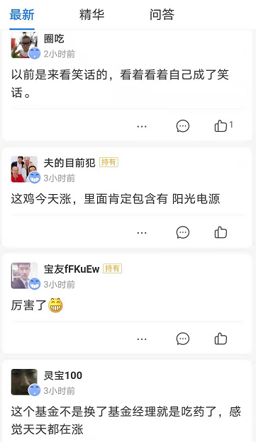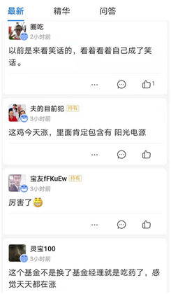 到了6月底,剧情再次发生反转。一位基民自嘲:“我以前是来看笑话的,看着看着自己成了笑话”;也有人不解:“这个基金不是换了基金经理,就是吃药了,感觉天天都在涨?”