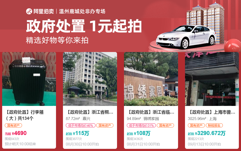 此次上拍标的物专场涉及金额超过1亿元,将于8月26日至9月17日在阿里拍卖平台陆续开拍,拍品类型包括整栋商业大厦、临街商铺、别墅、住宅、日用品及工艺品,其中房产类5.6折-7折起拍,动产类1元起拍。打开手淘进入“阿里拍卖”,搜索“鹿城处非办”,即可了解更多拍品详情。