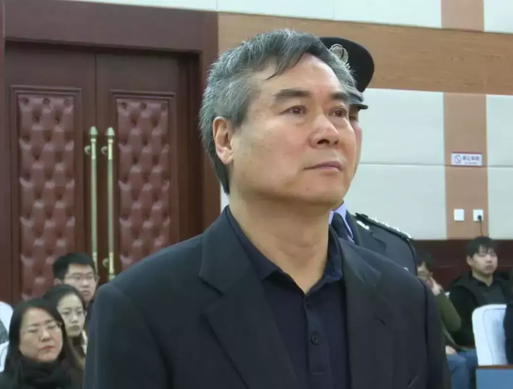 蔡希有在庭审时身着黑色西装,头发斑白。