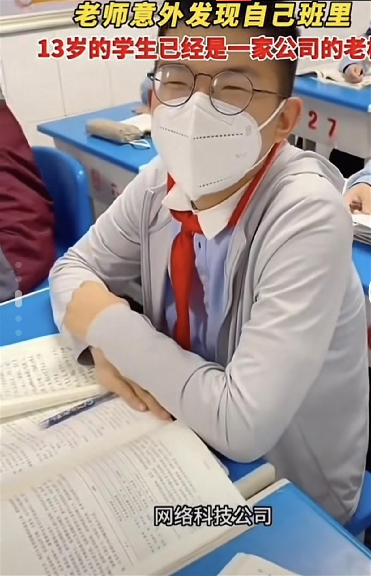 视频显示,重庆一名老师意外发现自己班里,一名13岁的学生已经是一家公司的老板。面对老师的镜头,该学生回应称是一家网络科技公司,并招聘有五六名员工。