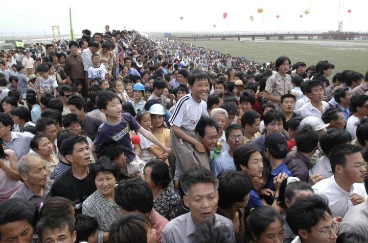 从清晨4点开始,人们扶老携幼,背椅提凳,或骑车,或步行。现场有位九秩高龄的老太太,是孙子用小车推着来的。她说,自己等这一天等了一辈子,无论如何,一定要亲眼看看这历史性的一幕。